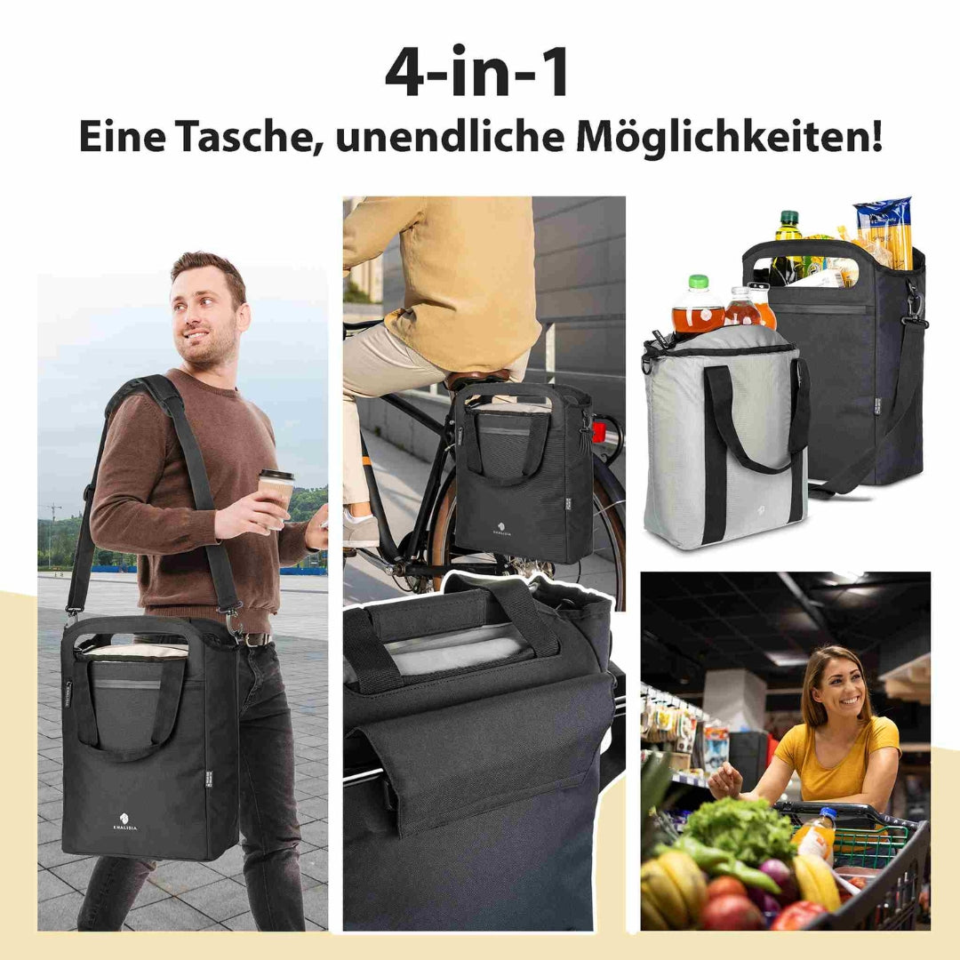 Funktion: Shopper, Fahrradtasche & Kühltasche (3 in 1)